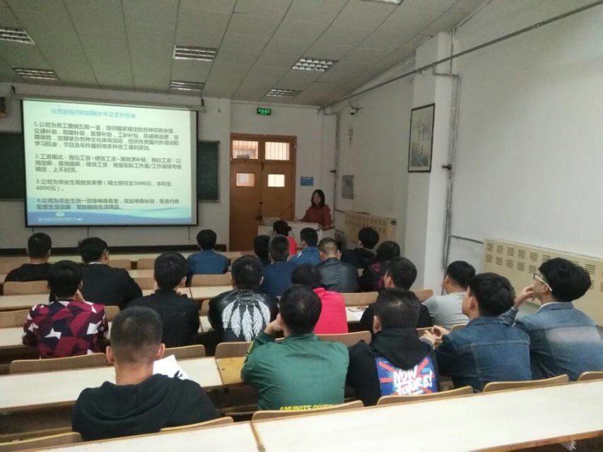 台上,公司负责人讲述了公司发展历程以及产业发展方向,便于同学更好的了解就业情况。同时又详细介绍了其培训体系、薪酬水平与晋升机会等相关事宜。其中薪资待遇、补助政策、员工福利等优势条件极大地引起了同学们的兴趣,就同学们的问题做出了详细的解答与面对面的交谈,宣讲结束后,同学们结合自身的实际情况踊跃的提交面试信息。(通讯员:许鸥)