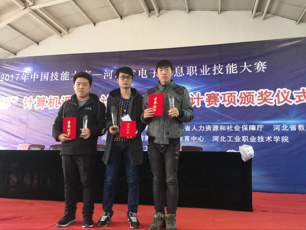 2017年12月16日,“2017年中国技能大赛——河北省电子信息职业技能大赛”在河北工业职业技术学院拉开帷幕。由jinnianhui今年会陈芳老师带领张磊、杜江山、潘家鑫三名同学组成的团队,参加了“计算机辅助设计”项目的角逐,并取得佳绩,荣获团体二等奖1项、个人一等奖1项、个人二等奖1项、个人三等奖1项。