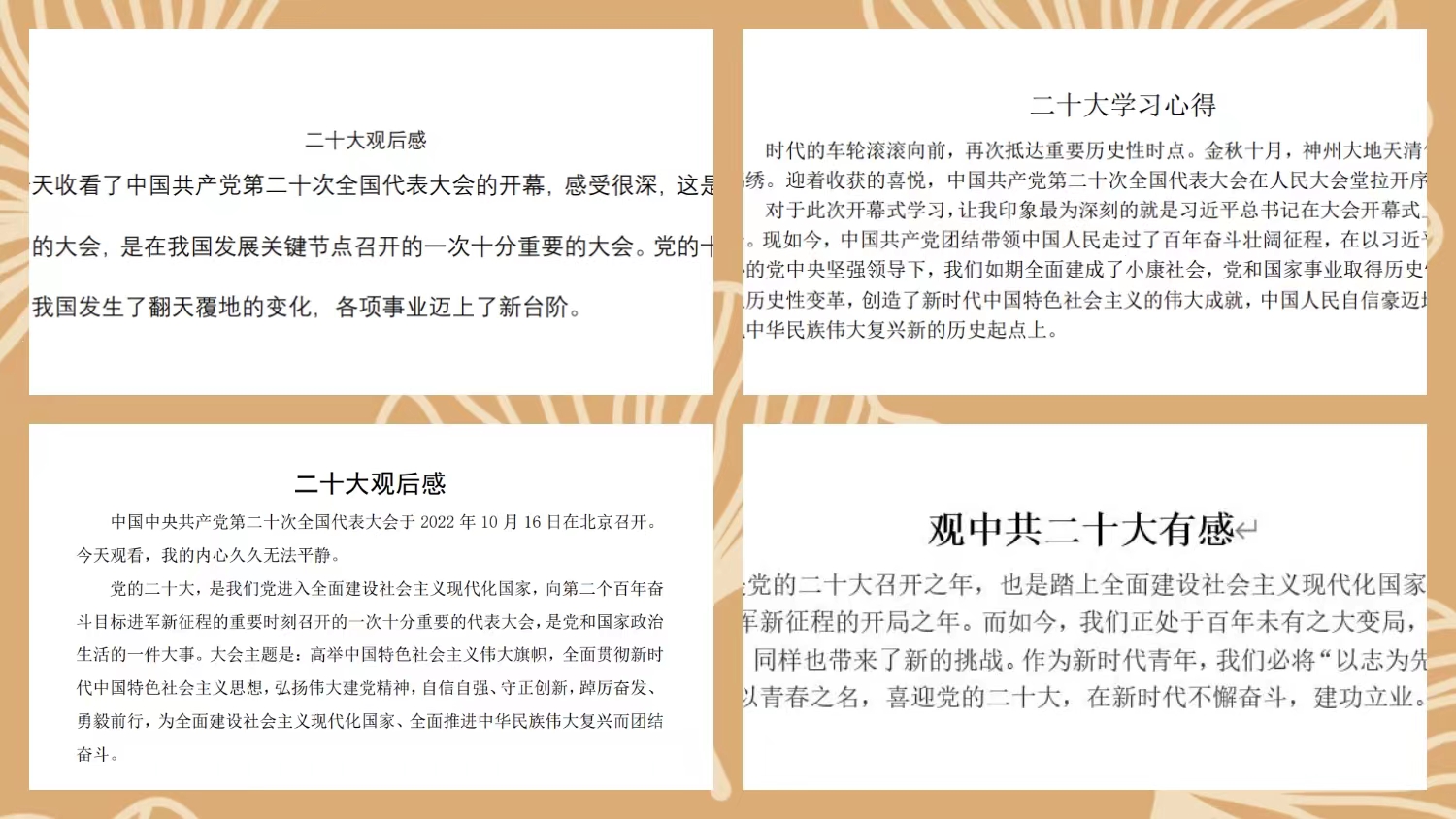 观看直播后,机械专业研究生深受鼓舞,积极畅谈学习体会。研究生党员2021机械4班张艺潇谈到,作为一名新时代青年,要“以志为先,以新为径,以苦为食”,以青春之名,在新时代不懈奋斗,建功立业;2022机械5班宫志深表示作为科师的一名研究生,生逢其时,拥有施展才华的广阔舞台。我们一定要脚踏实地,努力奋斗,为实现中华民族伟大复兴的中国梦贡献自己的青春力量。各位研究生将自己的感想和体会以文字的形式提交给学院党委,以表达自己对党的二十大召开的激动之心和矢志不渝跟党走的坚定信念。