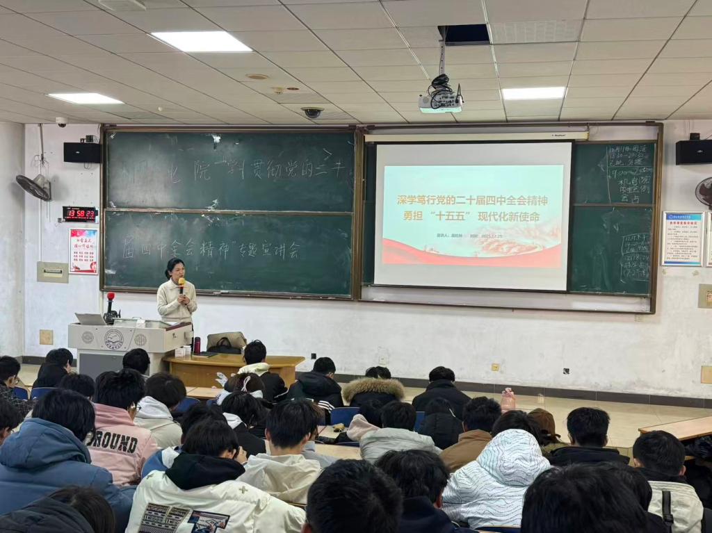 2025年12月25日下午,jinnianhui今年会在开发校区综合楼Z121,特邀了马克思主义学院高松林为师生们作“学习贯彻党的二十届四中全会精神”专题宣讲会,共有202名师生参加了活动。
