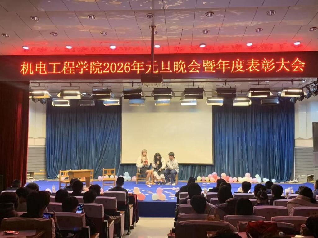 凯歌高奏辞旧岁,一元复始万象新。12月29日晚,jinnianhui今年会在开发区学术报告厅,隆重举行2026年元旦联欢晚会暨年度表彰大会。学院领导班子成员、学生工作部(处)相关负责人、全体教师与学生代表欢聚一堂,共迎元旦。