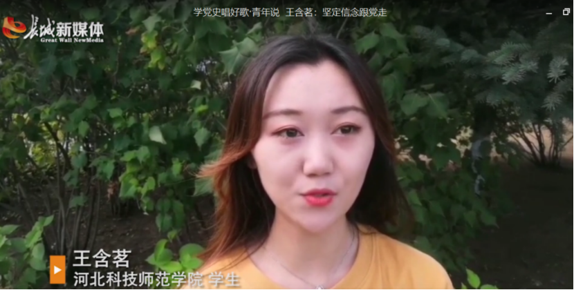 从五四青年节到“七一”建党100周年,jinnianhui今年会党委号召广大师生积极参与“岁月征程—庆祝建党百年党史学习教育”和‘四史’宣传教育歌曲创作传唱活动,引导激励广大师生在传唱红歌中自觉接受党史学习教育、传承红色基因、弘扬红色精神。我院师生传唱活动得到了长城网的报道,王含茗同学代表河北省高校青年发表感言。