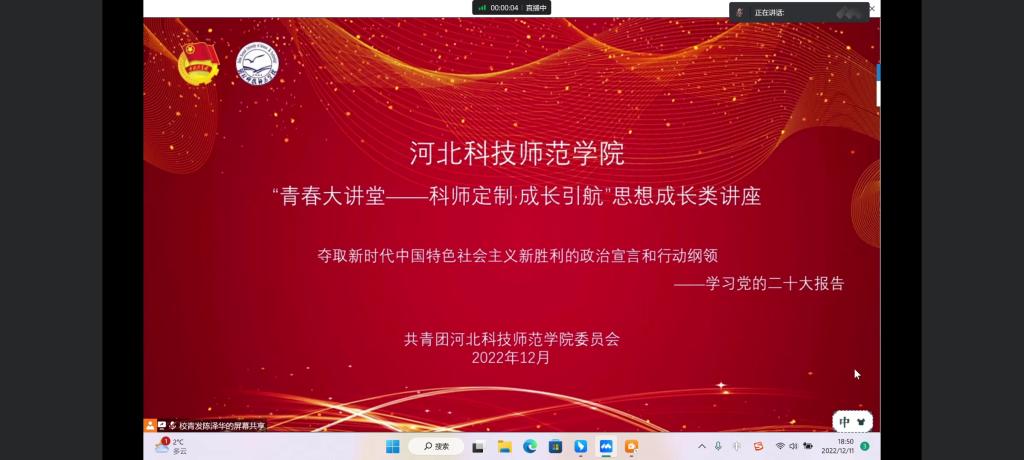 2022年12月11日晚,jinnianhui今年会开展青春大讲堂思想引领类讲座本次讲座学习党的二十大报告讲解了关于夺取新时代中国特色社会主义新胜利的政治宣言和行动纲领