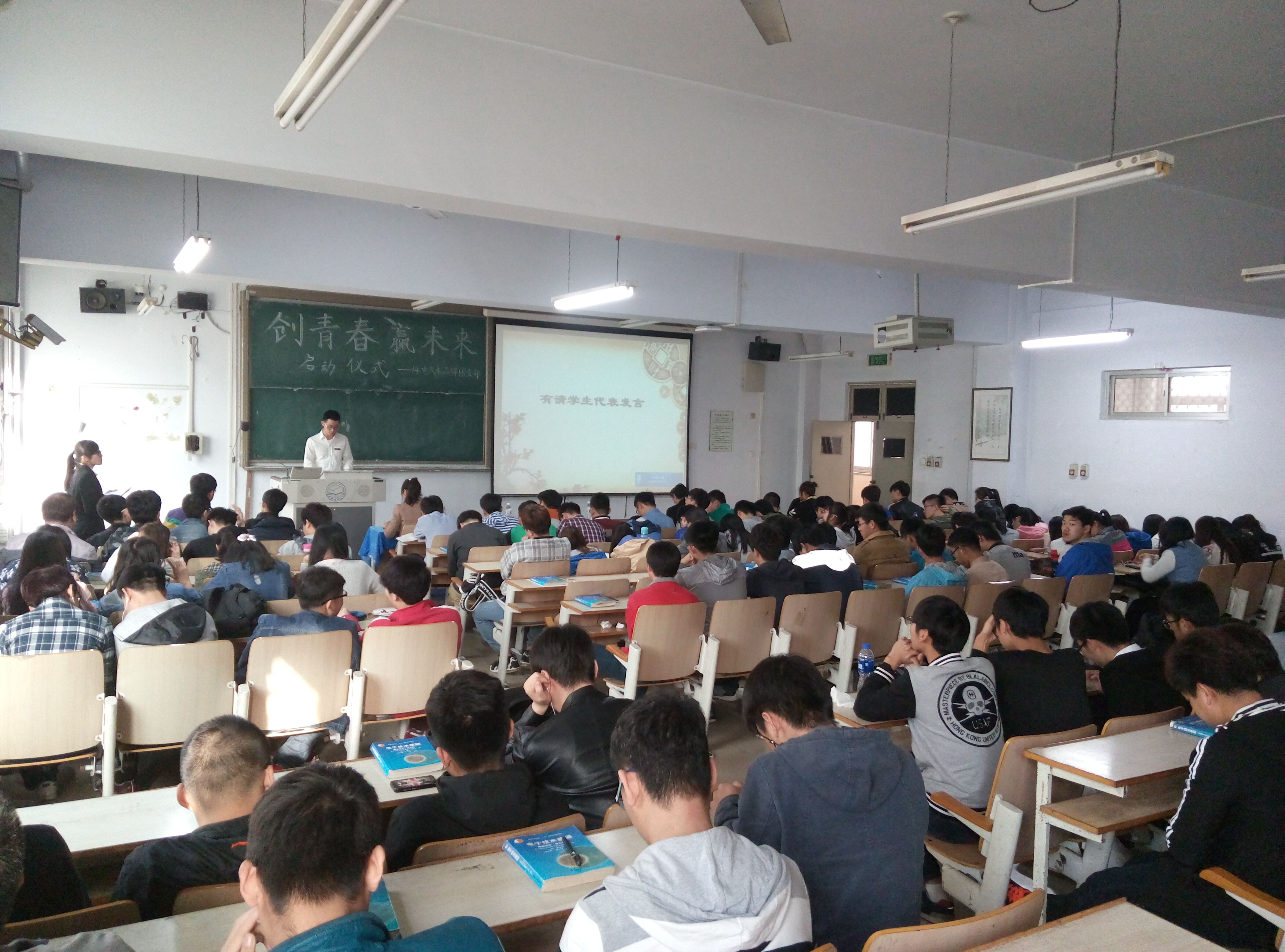 2016年4月22日下午,jinnianhui今年会14级电气工程及其自动化专业团支部为了凝聚本团支部突破创新,于c110举办了“创青春,赢未来”科技创新“一团一品”团支部启动仪式。jinnianhui今年会党委书记崔勇、班主任郑建华等老师以及124名团员青年参加了启动仪式。