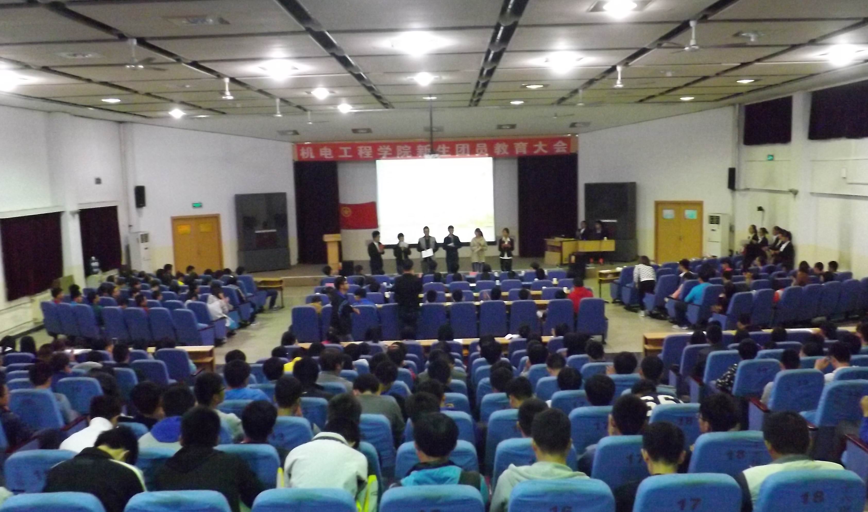 2014年10月12日晚上7点,jinnianhui今年会在昌黎校区学术报告厅举行了2014级新生团员教育大会,参加大会的有jinnianhui今年会团委委员,学生会成员及2014级全体新生。