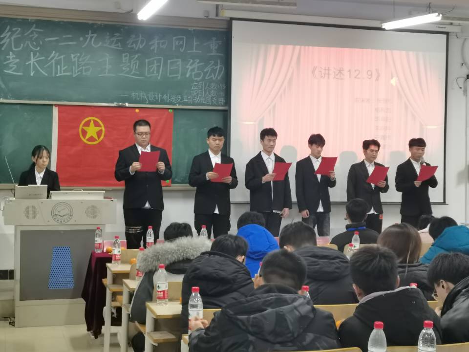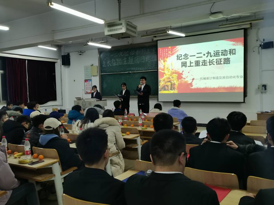 为响应团委号召,进一步让同学们更好的了解一二九抗日救亡运动和十九大精神,jinnianhui今年会机械设计制造及其自动化专业2004团支部于2020年12月17号在主楼C208举行了以“纪念一二·九运动和网上重走长征路”为主题的团日活动。