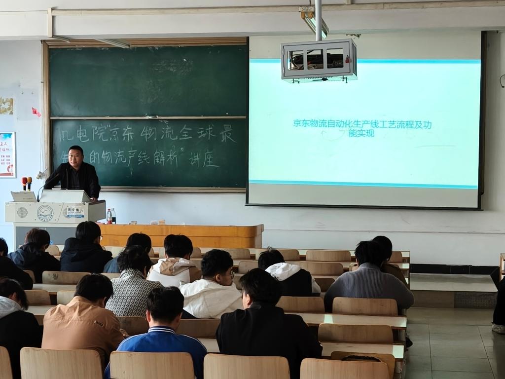 学院特邀卓效智能控制设备秦皇岛有限公司总经理、高级工程师、燕山大学研究生院硕士研究生特聘导师宋明主讲,现场座无虚席,学习氛围浓厚。宋明以“未来数字化工厂智能制造工程师职业发展”“京东物流全球最先进的物流产线解析”为题,带来两场精彩分享。前者中,他结合二十余年行业深耕经历与智能制造发展趋势,深入解析工程师需具备的技术能力、创新思维及职业成长路径,着重强调IT与OT融合的复合型人才培养方向;后者则通过京东物流智能分拣、无人仓储等实际案例,详解智能产线的技术架构、应用场景与效率提升逻辑,直观展现物流领域智能化成果。