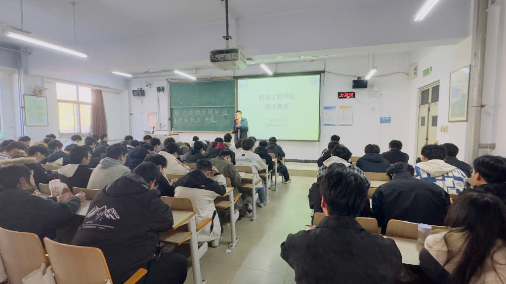学生工作负责人首先系统梳理了学院近年来就业情况,用详实数据呈现历年毕业生就业率、就业质量及主要就业领域,重点分析智能制造、装备研发、新能源等热门行业的人才需求趋势,让毕业生直观了解就业市场动态。随后,他与毕业生分享了多位优秀校友案例,既有进入知名企业深耕技术领域、成长为企业骨干工程师的典型,也有自主创业聚焦智能装备研发、实现项目落地的范例,通过校友的职业成长经历,为毕业生提供了可借鉴的发展路径。